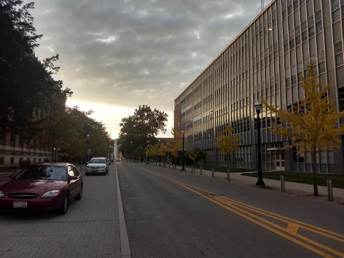 I studied all weekend, while digesting everything I was learning and exposed to, trying to maintain some kind of levelheadedness. It was a lot. And it was dizzying. And it was wonderful. And it was consuming. When I got to campus on Monday, I requested a meeting with my advisor. I wanted to ask about our class and how to handle the readings. Studying film was not my strong suit, so I went to ask if he knew of any strategies to think about approaching this. What happened next was actually pretty incredible. Instead of focusing on the class, we had a discussion about navigating the many routes and workways of grad life, including what it’s like to move to a different state, uprooting yourself for a crazy goal, and devoting your future to higher education. This chat became a transformative experience, and I feel like the only way of doing it justice would be to leave the rest of the conversation in that room. All I could think about when I left was how I lucky I was to land an advisor so in tune with the graduate student experience. I headed to the library to continue to study. It was another lesson to take at the close of my first week: if you ever need help, ask, no matter what it is. My advisor, my cohort, my department, the entire campus, all want to see me do well- it only makes sense to ask. My path was clear, and there was a light breeze in the air. I felt a little more at ease by the start of my new class week.