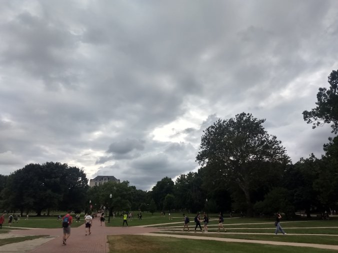 3:25- Cool! I got work done, answered all of my emails, and I don’t feel guilty for taking a break at this point. I start walking over to the meeting. It’s a Cookout for the Office of Diversity and Inclusion. I went to this last year and met some great people. As I walk down the Oval, it’s almost impossible to not think about where I was at this point last year. I would feel the anxiety of meeting new people, debating whether or not I should go in the first place. I still feel it now, only this time, I’ll know people there.